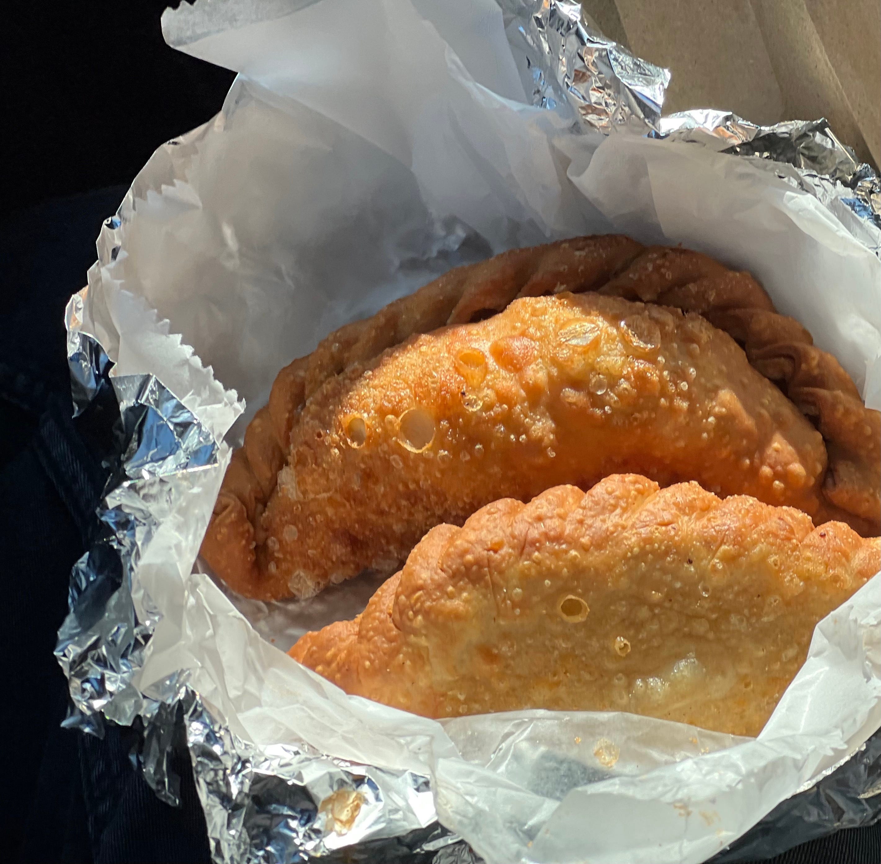The food, like Cadena’s personality, is bold. The empanadas are fry-oil dappled like an OG deep-fried McDonald’s apple pie. The exterior shatters while the interiors explode with citrus-kissed mojo pork or steak, chihuahua queso, and scallion. The whole thing breaks open with IG-worthy “cheese-pull” drip.